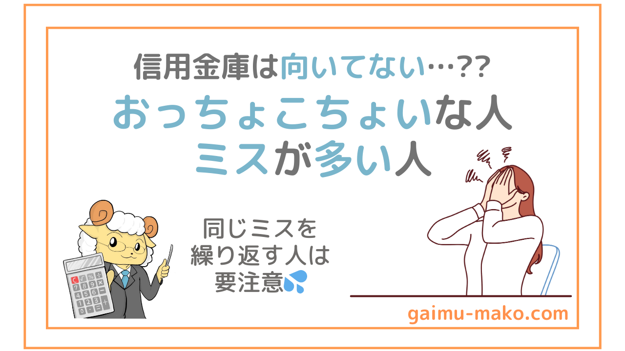 CATEGORY 金融業界 信用金庫のやりがいと楽しさを退職者が客観的に解説 2025.10.04 金融業界 マコ 外務員ラボ 【転職成功】信用金庫の職務経歴書の書き方・評価されるポイントを徹底解説 2025.09.18 金融業界 writer 外務員ラボ 信用金庫職員は転職しやすいのか?理由と転職成功の秘訣を解説 2025.09.17 金融業界 マコ 外務員ラボ 信用金庫の人手不足はチャンスなのか深刻な問題なのか?元職員が解説 2025.09.15 金融業界 マコ 外務員ラボ おっちょこちょいな人に信用金庫は向いていないのか?ミスが多い筆者が解説 2025.09.13 金融業界 マコ 外務員ラボ 信用金庫にノルマはない?ノルマ廃止の噂を元職員がチェック 2025.09.11 金融業界 マコ 外務員ラボ 最高?信用金庫で働くメリットを5つの観点で元職員が解説 2025.09.07 金融業界 マコ 外務員ラボ 信用金庫はワークライフバランスが良い?ゆるく働く楽な職場なのか元職員が解説 2025.09.06 金融業界 マコ 外務員ラボ 信用金庫は将来性ある?今後なくなる?噂の理由を元信用金庫職員が解説 2025.08.27 金融業界 マコ 外務員ラボ 信用金庫と銀行の違いを解説|地域の中小企業に密着しているのはどっち?金融業でも仕事内容が違う 2025.08.16 金融業界 マコ 外務員ラボ もっと見る